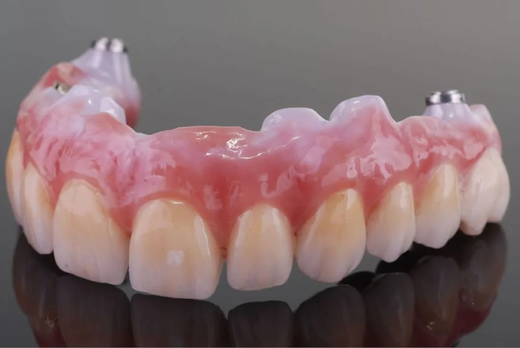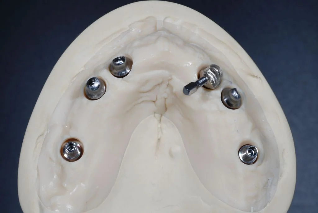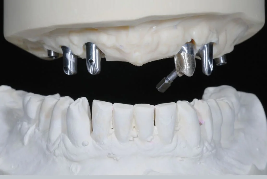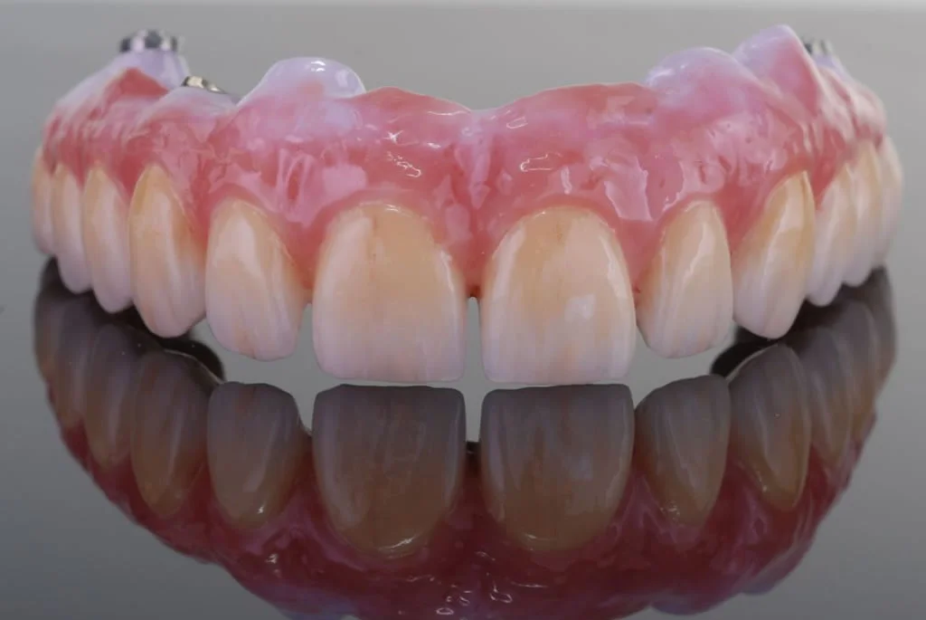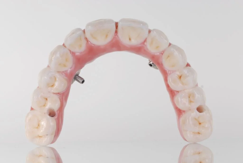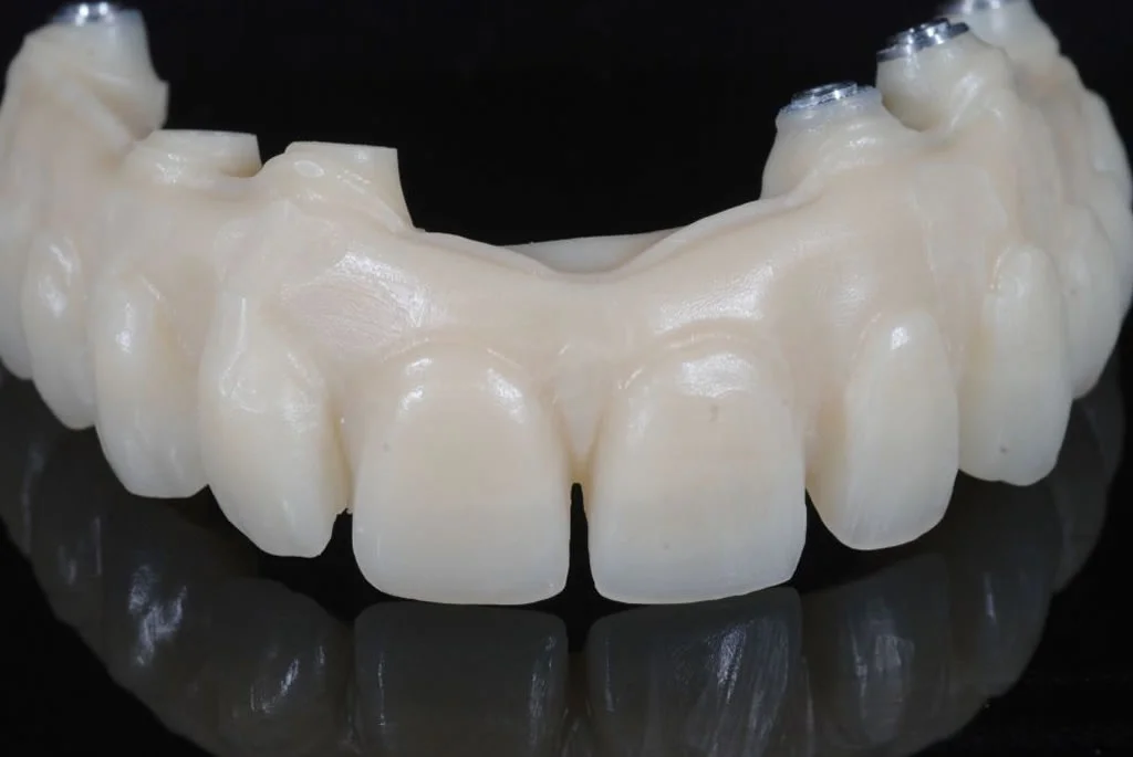 Technisch ist diese Arbeit vertikal als auch horizontal im Munde des Patienten verschraubt, dies fühlt sich für den Patienten wie die eigenen Zähne an. Bei der Prophylaxereinigung ist die Versorgung durch die Zahnarztpraxis abschraubbar.
